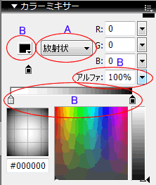 B.グラデーションスライダーを以下のように設定する。