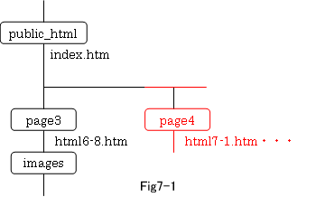 | a. | 「page4」ディレクトリ(フォルダ)の下にある「html7-1.htm」を「html7-2.htm」としてコピーします。 |