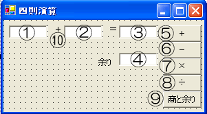 ⑩のラベルは、それぞれのボタンを押すとその演算記号になる。