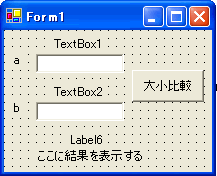 ・a<bのときは、「変数bのほうが大きい」とLabel6に表示させる。