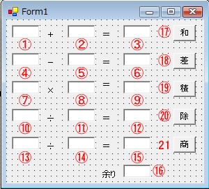 ⑯TextBox16 ⑰Button1 ⑱Button2 ⑲Button3 ⑳Button4 21.Button5
