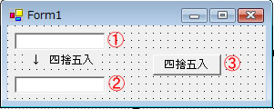 オブジェクト名:①TextBox1 ②TextBox2 ③Button1
