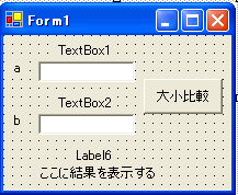 変数a(Textbox1)より変数b(TextBox2)のほうが小さい場合、ラベル(Label6)に「変数bのほうが大きい」