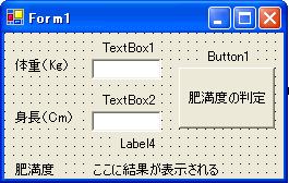 このbmiが25未満のときは、「良いでしょう」、bmiが25以上のときは「太りすぎ」とLabel4に表示させなさい。